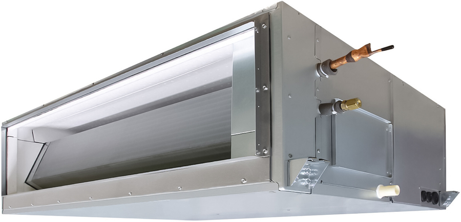 Канальные тепловые насосы Toshiba Big Digital Inverter 4 RM-DTP состоят из больших по мощности канальных блоков для установления требуемого микроклимата в помещениях. Инверторные наружные блоки обеспечивают потребности внутренних блоков с минимумом энергопотребления. То же относится к эффективным вентиляторам с несколькими скоростями и создаваемым соответствующим им напором воздуха.